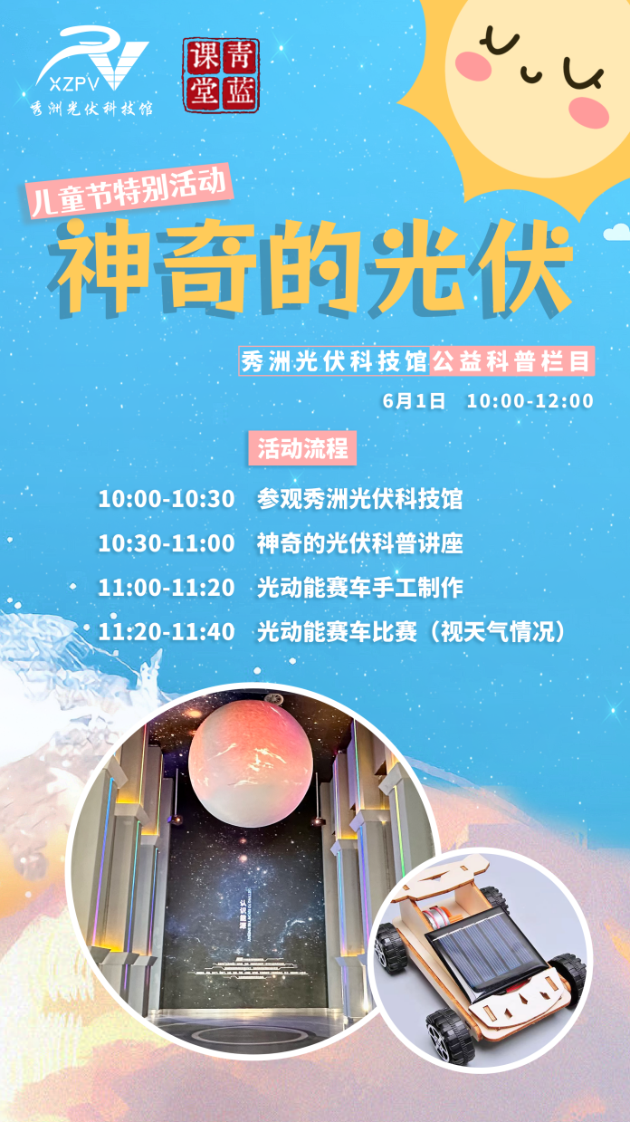 6月1日,秀洲光伏科技馆精心策划了一场别开生面的儿童节特别活动——《神奇的光伏》课程。此次活动将于本周六上午10:00至12:00在秀洲光伏科技馆路演空间举行。活动旨在通过实践与科普相结合的方式,让孩子们在欢乐中感受光伏科技的魅力。
